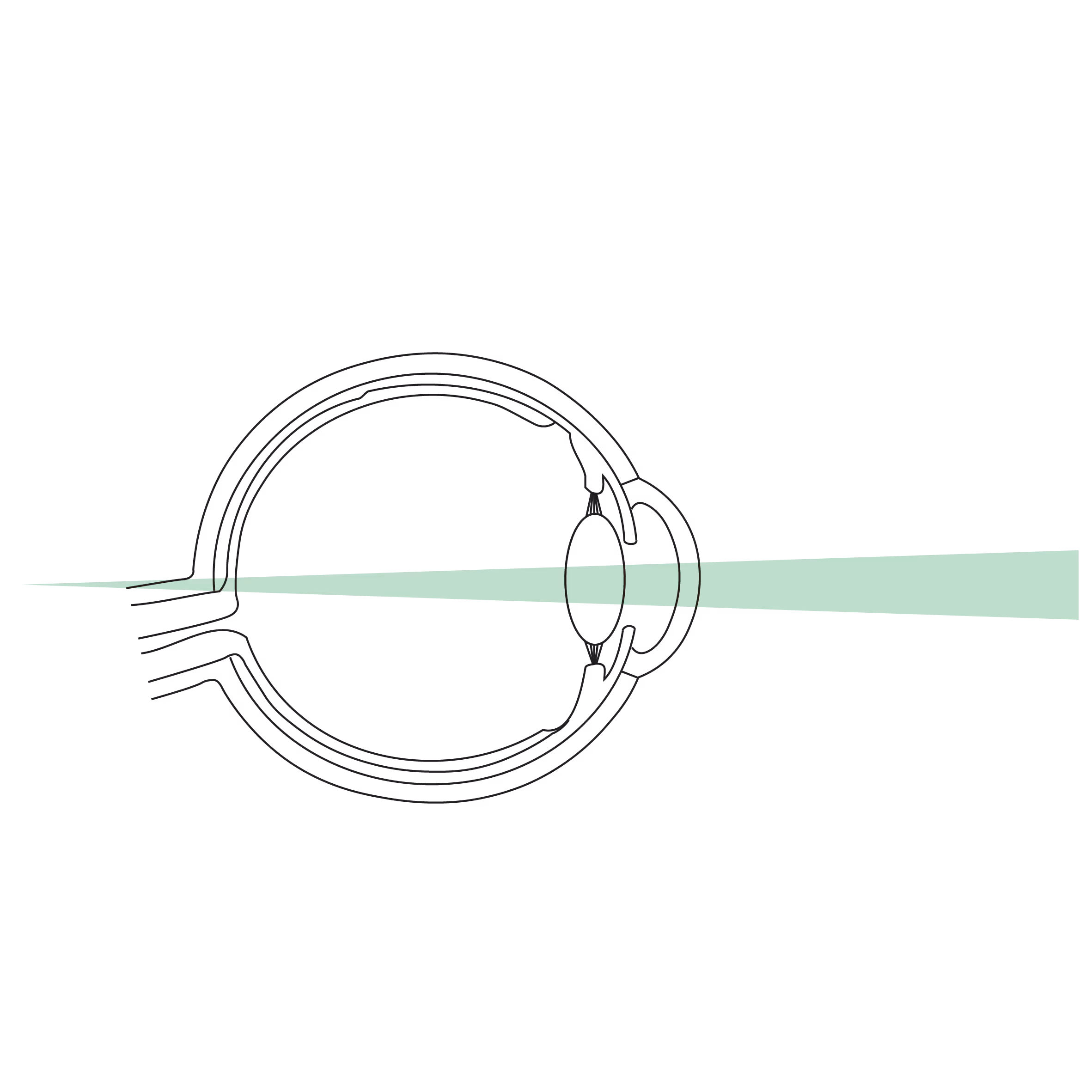 Lorsque le pouvoir de focalisation de l’œil est trop faible ou que l’œil est trop court, les rayons lumineux qui pénètrent dans l’œil convergent en arrière de la rétine au lieu de se focaliser directement dessus.